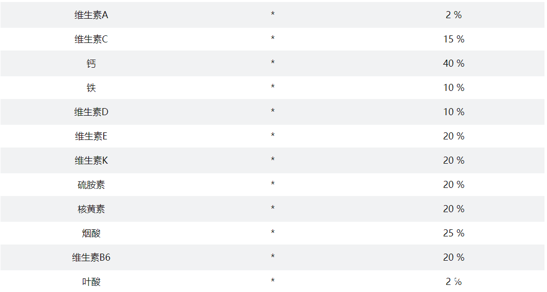 配料:水、乳蛋白混合物(浓缩牛奶蛋白、酪蛋白乳清蛋白)、巴氏杀菌奶油、葵花籽油、大白、可可(用碱加工)、咖啡、纤维素凝胶胶、硫酸二钾、六偏磷酸钠、天然和人造香钙、盐、乙酰磺胺酸钾、角叉菜胶、三氯蔗磷脂。维生素矿物质混合物:抗坏血酸钠C)、葡萄糖酸锌、DL-α-生育酚乙酸酯(维 E)、烟酰胺(维生素 B3)、葡萄糖酸锰、 (维生素 B5)、盐酸吡哆醇(维生素 B6) 铬、叶酸(维生素 B9)、生物素(维生素 化钾、钼酸钠、亚硒酸钠、叶绿醌(维生素 钴胺(维生素 B12)、胆钙化醇(维生素 D3)。
