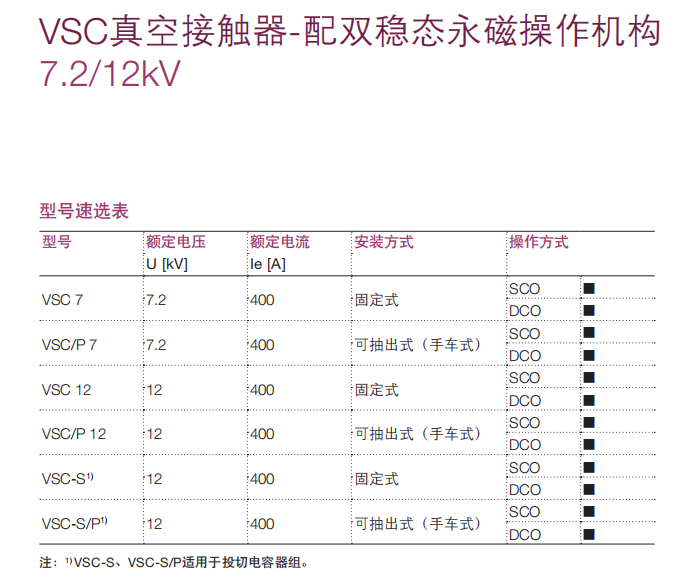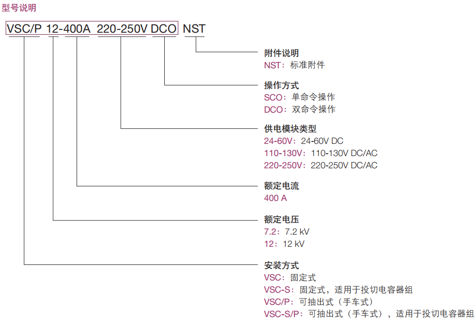 型号:VSC/P 12kV-400A 110VDC DCO NST
