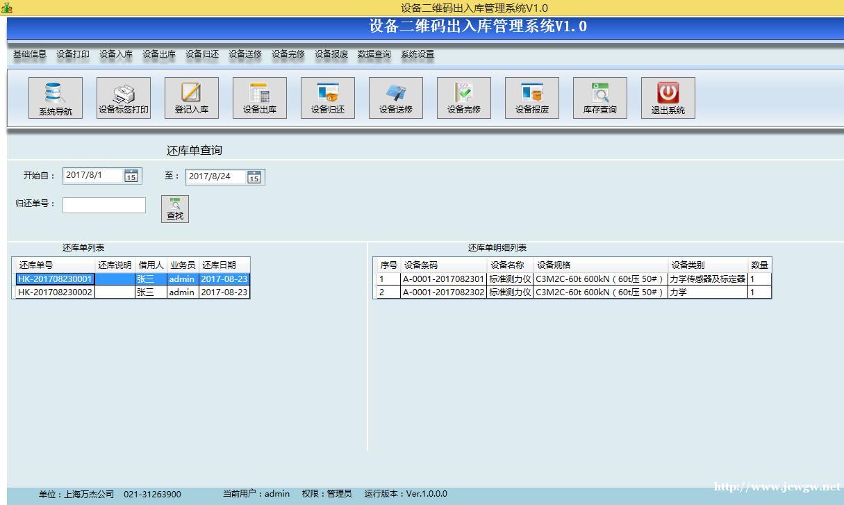 3、本系统将从采购入库,领用出库,归还入库,送修出库,完修入库,设备报废六个工作环节进行管理。