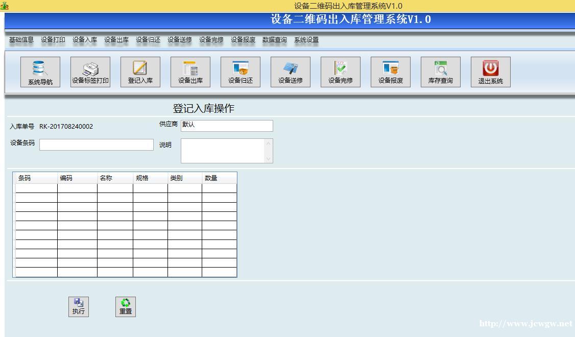 上述是运行的基本操作界面,只需使用扫描枪和条码机即可实现运行,操作简便,适用于企业部门的仓库使用。