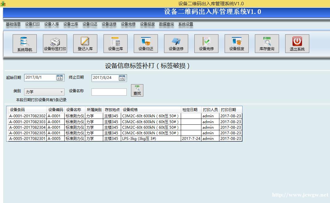 标签补打(因为破损丢失,输入类别、名称后找到相应的信息,点击右键打印),如图示: