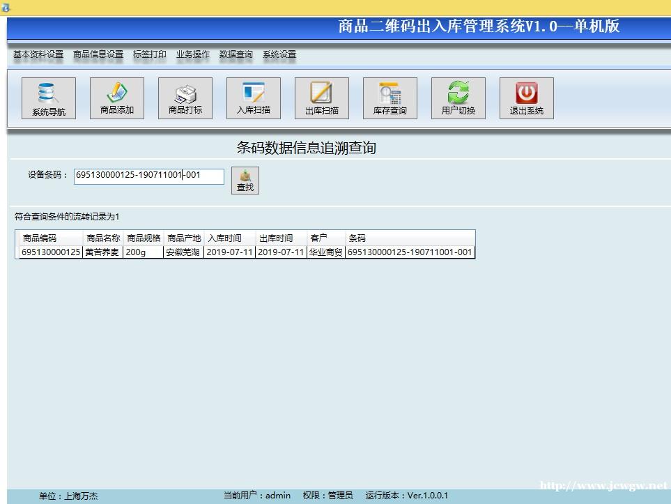 1、本系统可以独立通过电脑操作实现仓库二维码出入库业务。